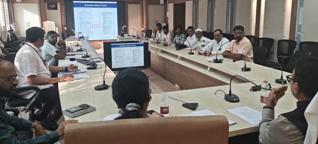 बैठकीत जिल्हाधिकारी तथा जिल्हा निवडणूक अधिकारी संजयसिंह चव्हाण यांनी विशेष सखोल पुनरिक्षण कार्यक्रमांतर्गत मतदार मॅपिंगची प्रक्रिया स्पष्ट केली. यामध्ये सन 2002 च्या अंतिम मतदार यादीतील मतदारांचे सन 2025 च्या मतदार यादीतील मतदारांशी मॅपिंग करणे तसेच सन 2002 च्या मतदार यादीत नाव नसलेल्या मतदारांचे त्यांच्या आई-वडील अथवा आजी-आजोबा (Progeny Mapping) यांच्या नोंदीशी मॅपिंग करण्याबाबत माहिती देण्यात आली. तसेच मतदान केंद्रांचे सुसूत्रीकरण करण्याबाबतही मार्गदर्शन करण्यात आले.बैठकीत उपस्थित प्रतिनिधींनी एसआयआर संदर्भात उपस्थित केलेल्या विविध शंकांचेही निरसन करण्यात आले.