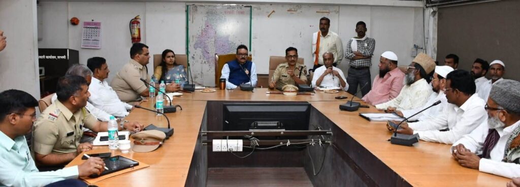 बैठकीस जिल्हा पोलीस अधीक्षक रविंद्रसिंह परदेशी, मनपा आयुक्त नितीन नार्वेकर, जिल्हा परिषदेच्या मुख्य कार्यकारी अधिकारी नतीशा माथूर, उपविभागीय पोलीस अधिकारी जीवन बेनीवाल, संबंधित विभागांचे प्रमुख, समितीचे सदस्य उपस्थित होते. जिल्हाधिकारी श्री. चव्हाण म्हणाले की, अलीकडे हिंदू व मुस्लिम समाजाचे अनेक सण एकत्र येताना दिसत आहेत, हे एक प्रकारे एकात्मतेचे प्रतिकच म्हणावे लागेल. अशावेळी समाजबांधवांनी एकीने शांततेत सण साजरे करावेत. सण साजरे करत असताना कुठेही गालबोट लागणार नाही, अनुचित प्रकार घडणार नाही याची सर्वांनी काळजी घ्यावी. जर कुठे अनुचित प्रकाराची माहिती मिळाल्यास तात्काळ पोलीसांना माहिती द्यावी.