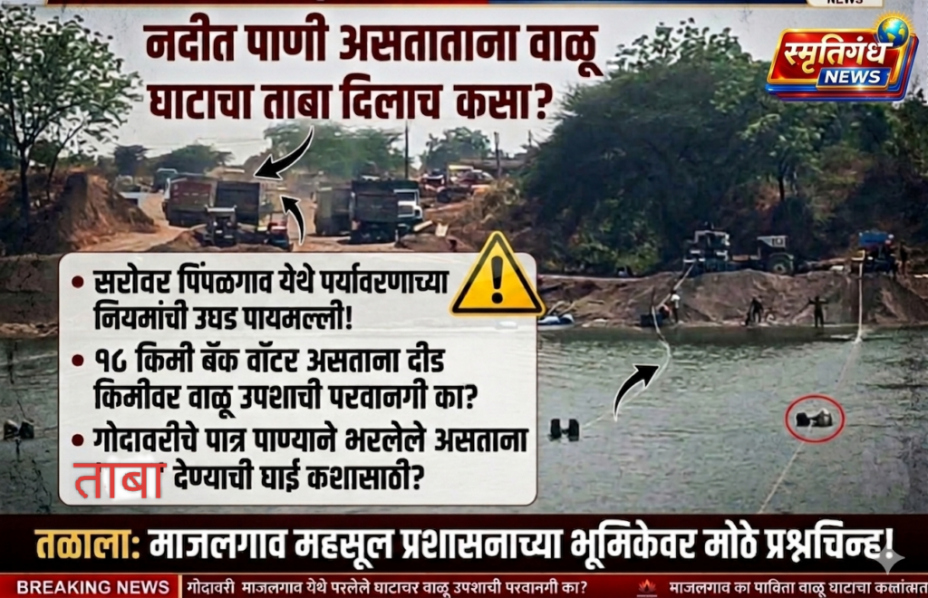 पर्यावरण नियमांनुसार, नदी पात्रात पाणी असताना वाळू उत्खननास परवानगी देता येत नाही. सरोवर पिंपळगाव येथील हद्दीत सध्या गोदावरी नदी पूर्णपणे भरलेली आहे. असे असतानाही माजलगाव महसूल प्रशासनाने संबंधित वाळू घाट धारकाला प्रत्यक्ष ताबा (पझेशन) दिला आहे. पाणी असताना वाळू काढणे केवळ तांत्रिकदृष्ट्या कठीण नसून ते पर्यावरणासाठीही घातक आहे.